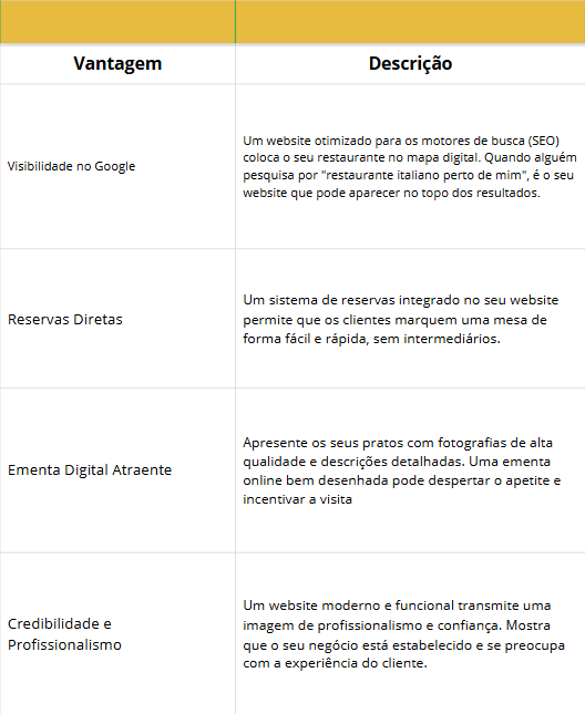Na era digital, a presença online de um restaurante é tão crucial quanto a sua localização física. Muitos proprietários de restaurantes podem pensar que uma página ativa nas redes sociais é suficiente, mas a realidade é que um website institucional oferece um nível de controlo, profissionalismo e visibilidade que as redes sociais simplesmente não conseguem igualar.